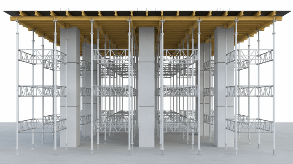Detay hafif ve dayanıklı dikme sistemi 4 tip çerçeve elemanından oluşan hızlı ve kolay kurulum sağlayan bir taşıyıcı iskele sistemidir. Ağır Yük Döşeme Altı İskele Sistemi, ana çerçeve elemanı, diyagonal bağlantı elemanı, birleştirme elemanı ve yükseklik ayar elemanlarından oluşur. Masa Kalıp Sistemi olarak kullanıldığında proje bitimine dek sökülmeden kullanılabilir. Büyük ebatlı masalar oluşturularak, işçilikten, zamandan ve malzemeden tasarruf sağlanır. Sistem yüksek taşıma kapasitesine sahiptir. Dayanımı ayak başına 55kN/dur. Detay hafif ve dayanıklı dikme sistemi projenin özelliklerine göre statik hesap yapılarak dizayn edilir. Teknik ekibimizce çözümlenen projeye en uygun malzeme miktarları çıkarılarak iskele yerleşim planı ve kesitleri ile birlikte müşterilerimize teslim edilir; uygulamalarda yerinde teknik destek verilir.